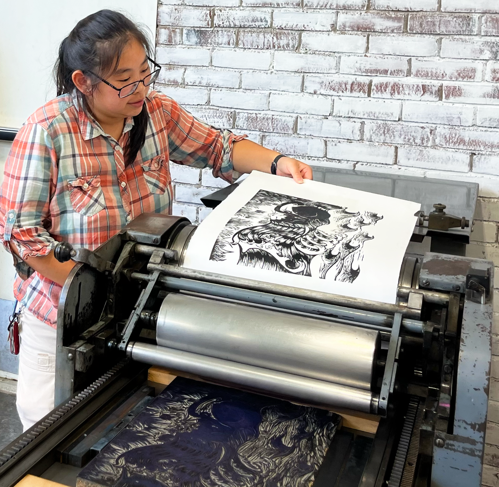 Learn how to create multi-color prints from a single linoleum block on Five Points Arts Center's new Vandercook Press. Participants will learn reduction relief printing through a step-by-step process. You will develop an image - either an original drawing or a Photoshopped photograph - as the basis for a three-color plus black print. The workshop will cover image preparation, block carving, ink mixing and printing on the Vandercook Press.