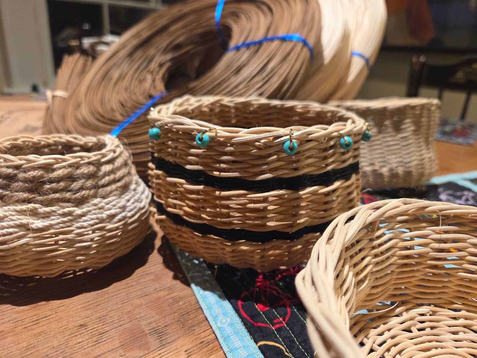 Basket making is as old as humanity, and is an essential craft and art form. People need a means to store and carry things - baskets were created out of this necessity. Every culture weaves their own twist into the baskets they make. An integral part of the basket making process is to pass on the knowledge and joy of the craft. In this workshop, you will learn to make a small reed woven basket from beginning (bottom) to rim (border). The techniques can be used to weave future baskets out of all kinds of materials. You can use just about anything to make a basket - from store-bought reeds to materials gathered from nature. You can even make your own cordage from plants in the garden.