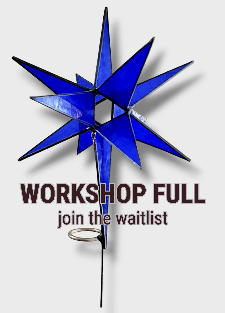 Explore the three-dimensional possibilities of working with stained glass and the techniques of using the copper foil method. Designed for all levels of experience, participants will learn the processes of cutting and grinding glass, foiling, soldering, and finishing a sculptural stained glass piece. This Moravian star ornament is ready to adorn a tree for the holidays or to enjoy year-round. All tools and materials will be provided by the instructor.